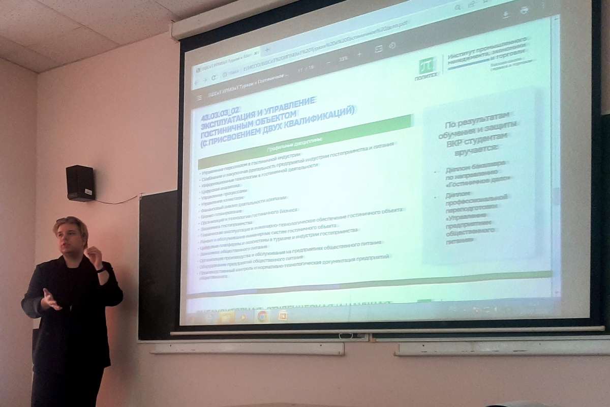 Представители Высшей школы сервиса и торговли провели серию образовательных и профориентационных мероприятий для студентов Института среднего профессионального образования СПбПУ в рамках Недели туризма.